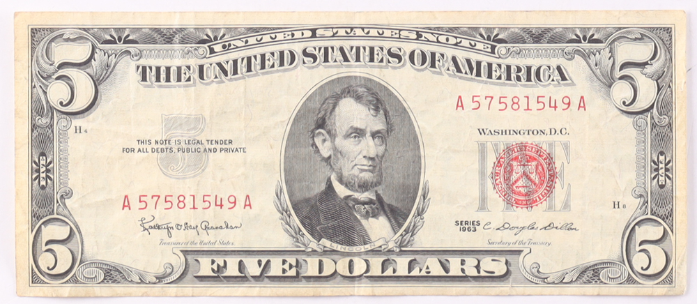 1963 $5 United States Treasury Red Seal Silver Certificate Paper Bank Note