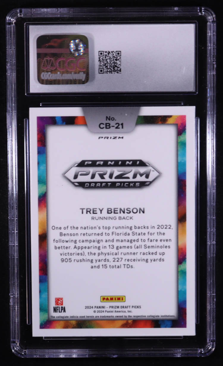 Trey Benson 2024 Panini Prizm Draft Picks Black Color Blast #21 RC (CGC 9)