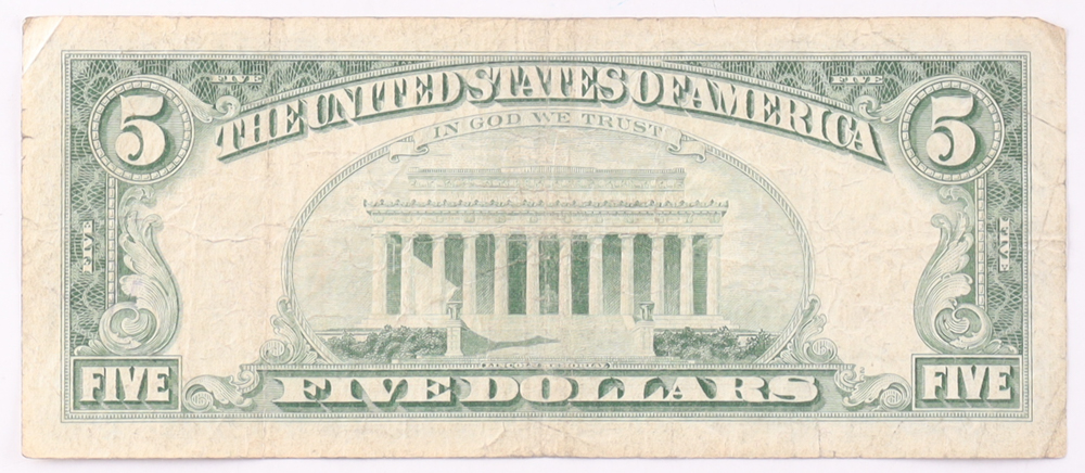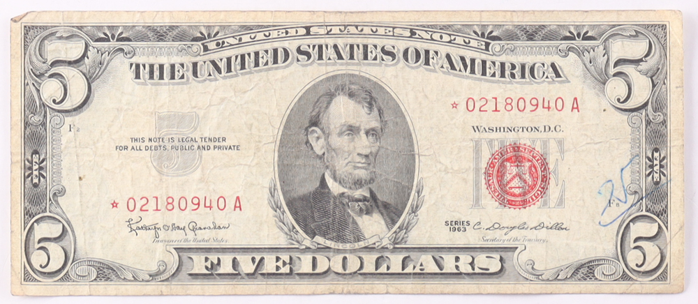 1963 $5 United States Treasury Red Seal Silver Certificate Paper Bank Note