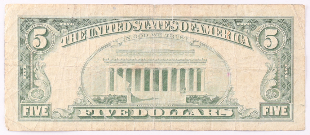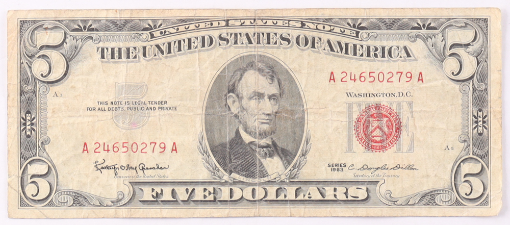1963 $5 United States Treasury Red Seal Silver Certificate Paper Bank Note