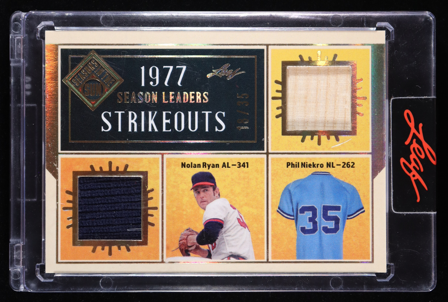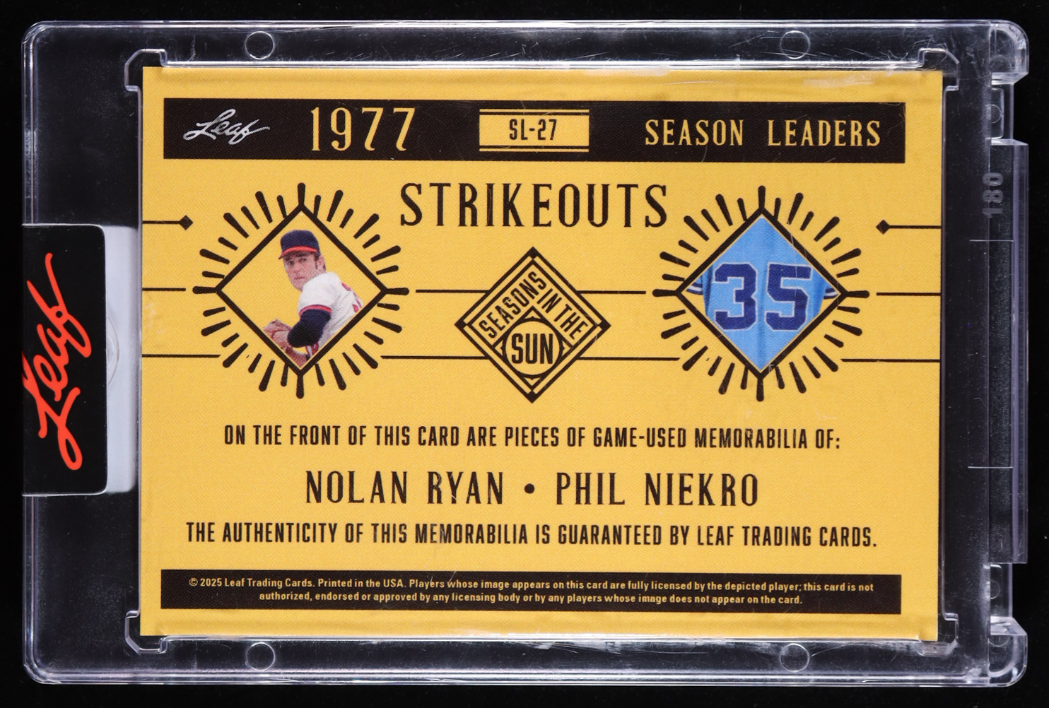 Nolan Ryan / Phil Niekro 2025 Leaf Seasons In The Sun Season Leaders Game-Used Memorabilia Spectrum Gold Holofoil #SL27 #18/35