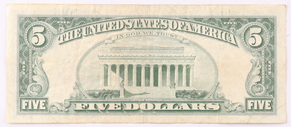 1963 $5 United States Treasury Red Seal Silver Certificate Paper Bank Note