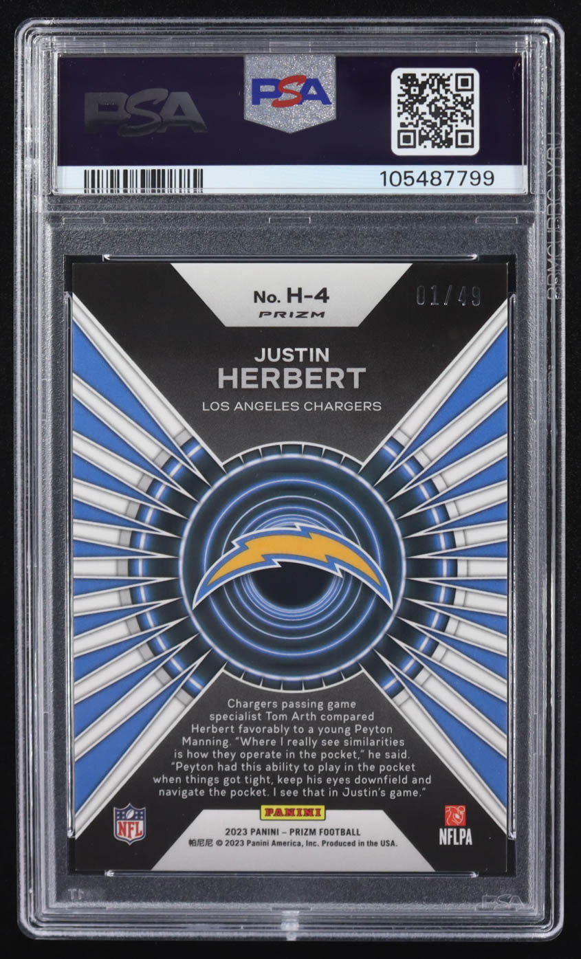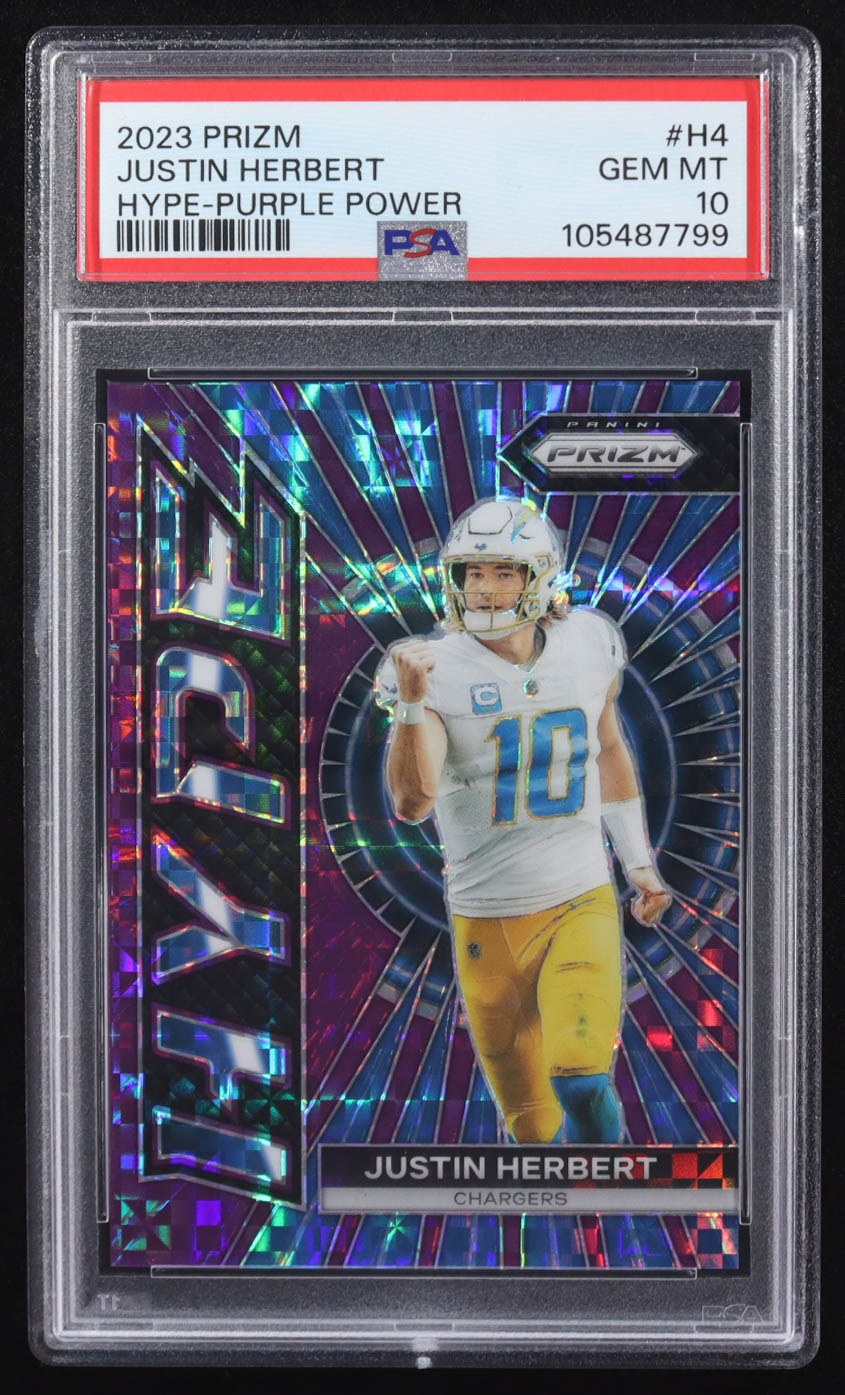 Justin Herbert 2023 Panini Prizm Hype Purple Power #H-4 #01/49 (PSA 10)