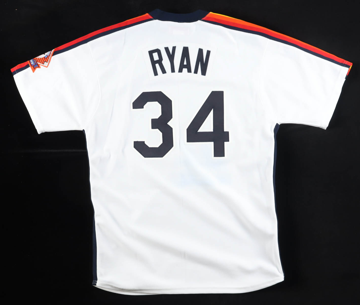 1986 Mitchell & Ness jersey with everything sewn on, size L. Hand-signed and inscribed by Nolan Ryan (Houston Astros, HOF). Please note, the signature and inscription has bled. See photos regarding the condition of the item.