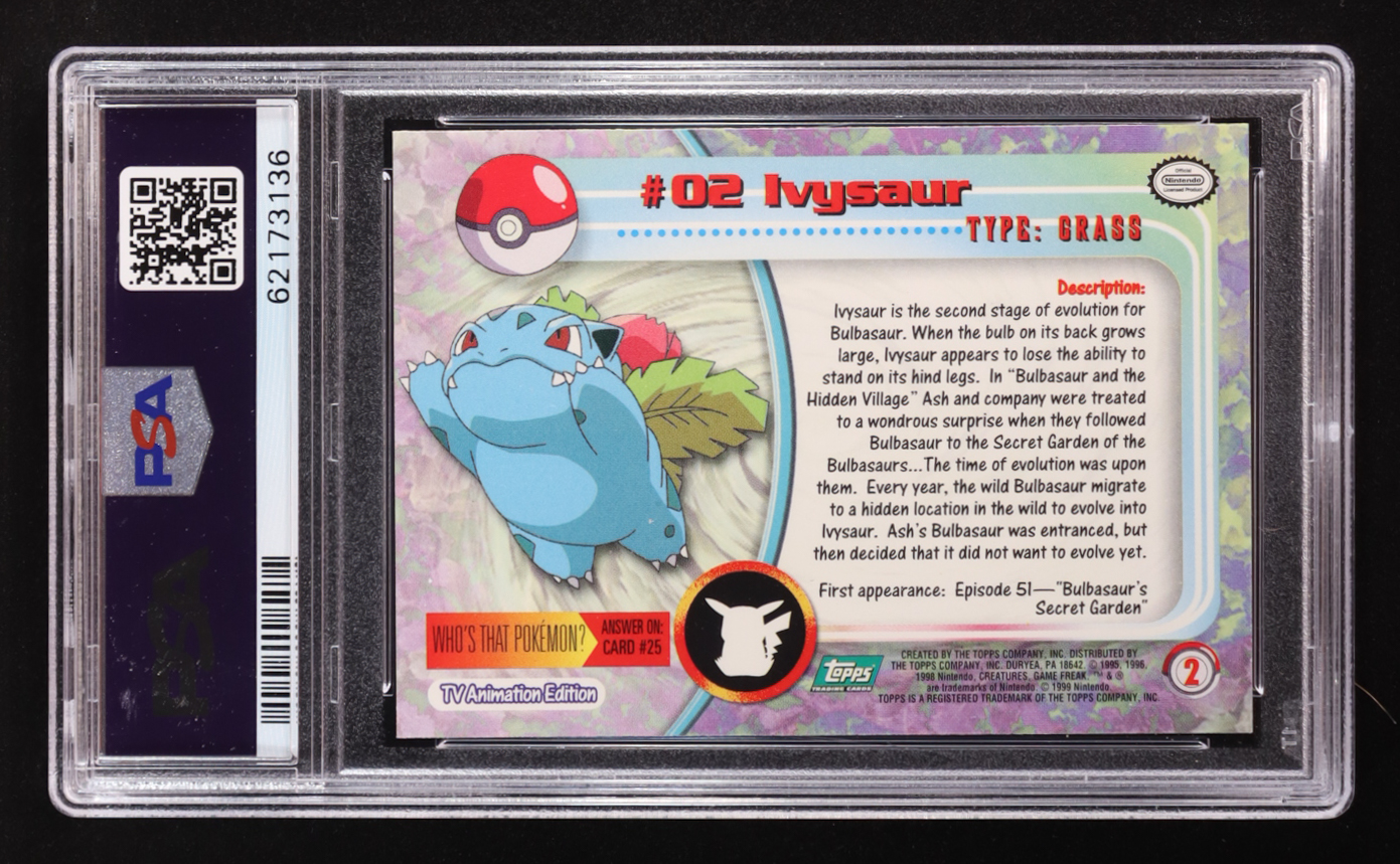 Ivysaur 1999 Topps Pokemon TV Animation Series 1 Green Logo Backs #2 (PSA 9)