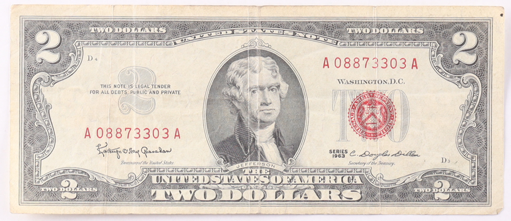 1963 $2 United States Treasury Red Seal Silver Certificate Paper Bank Note