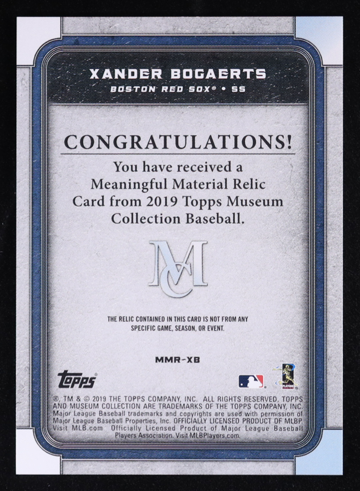 Xander Bogaerts 2019 Topps Museum Collection Meaningful Material Relics #MMRXB #15/50