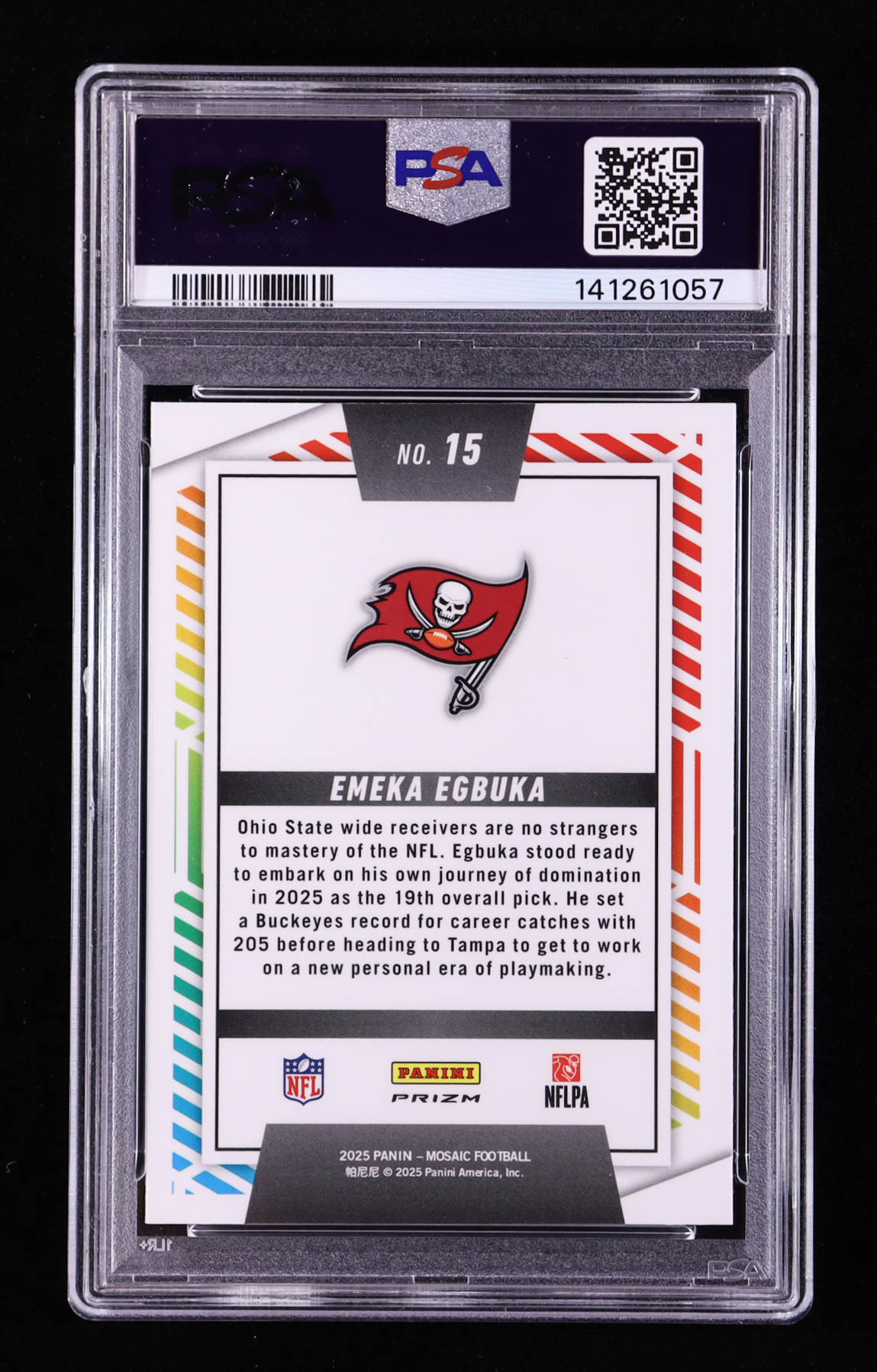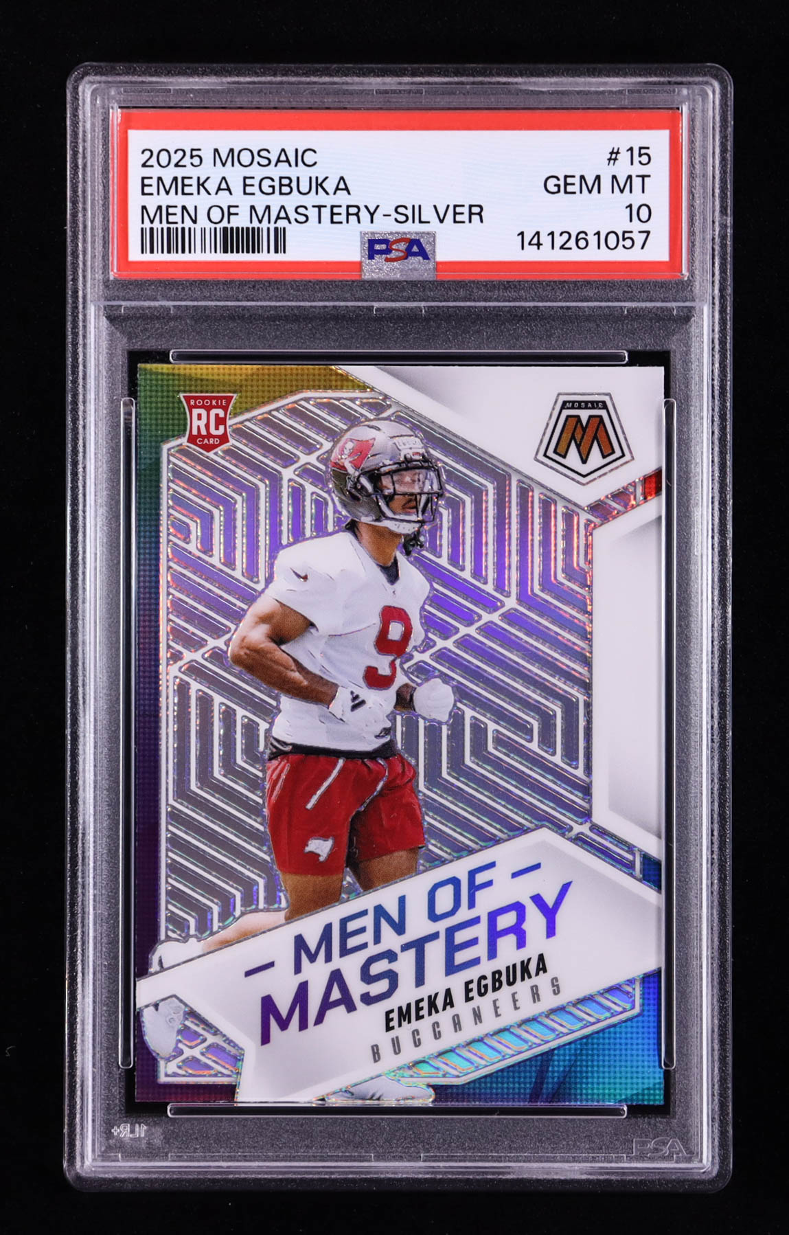 Emeka Egbuka 2025 Panini Mosaic Men of Mastery Silver #15 RC (PSA 10)