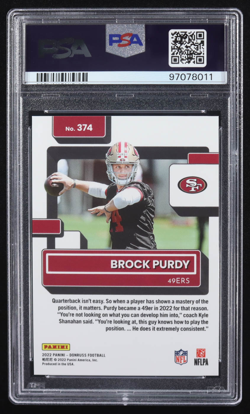 Brock Purdy 2022 Panini Donruss Press Proof Premium RR #374 (PSA 9)