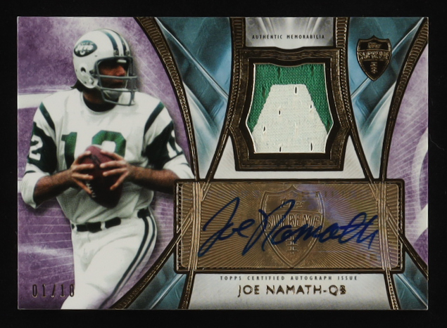Joe Namath 2014 Topps Supreme Autographed Relics Purple Patch #SAPJN #01/10