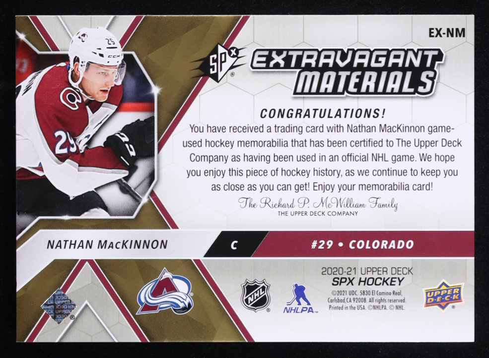 Nathan MacKinnon 2020-21 SPx Extravagant Materials Premium #EXNM #18/25