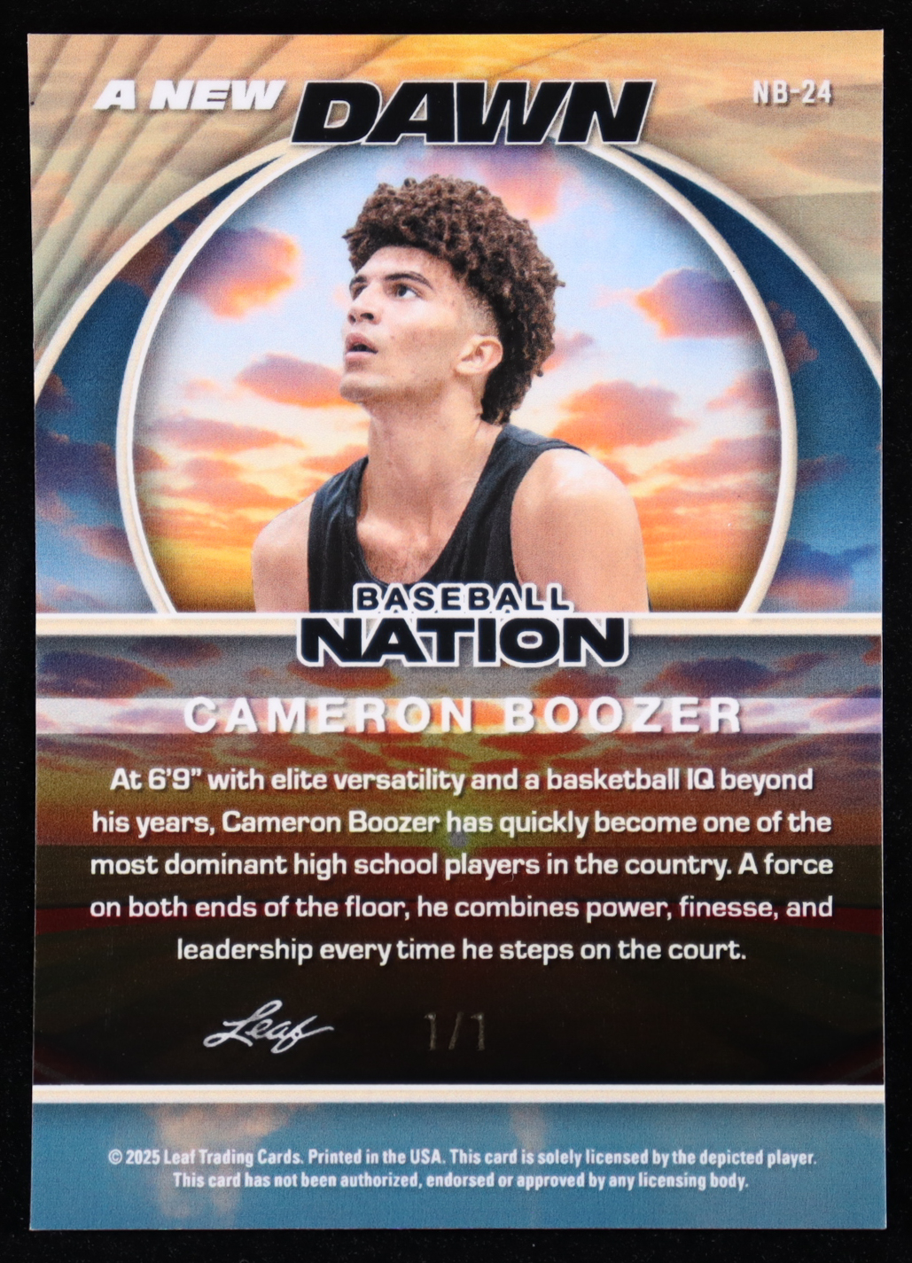Cameron Boozer 2025 Leaf Baseball Nation A New Dawn Silver Lava #NB24 #1/1 RC