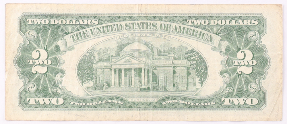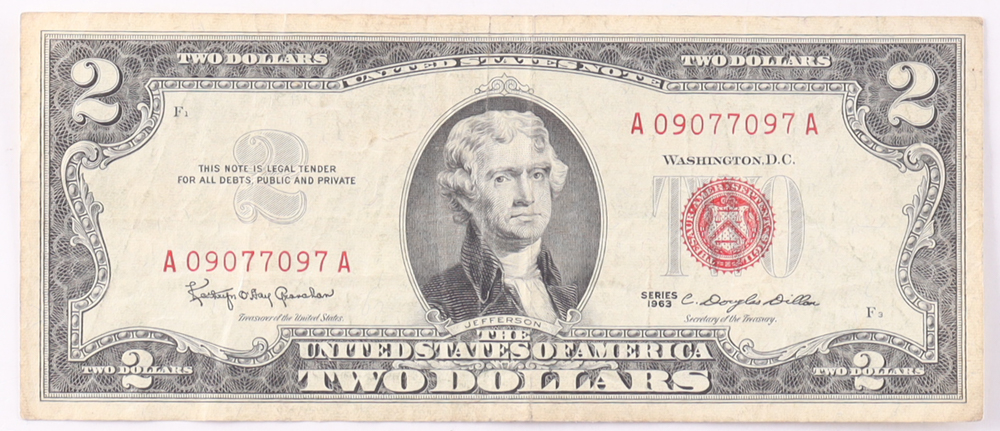 1963 $2 United States Treasury Red Seal Silver Certificate Paper Bank Note