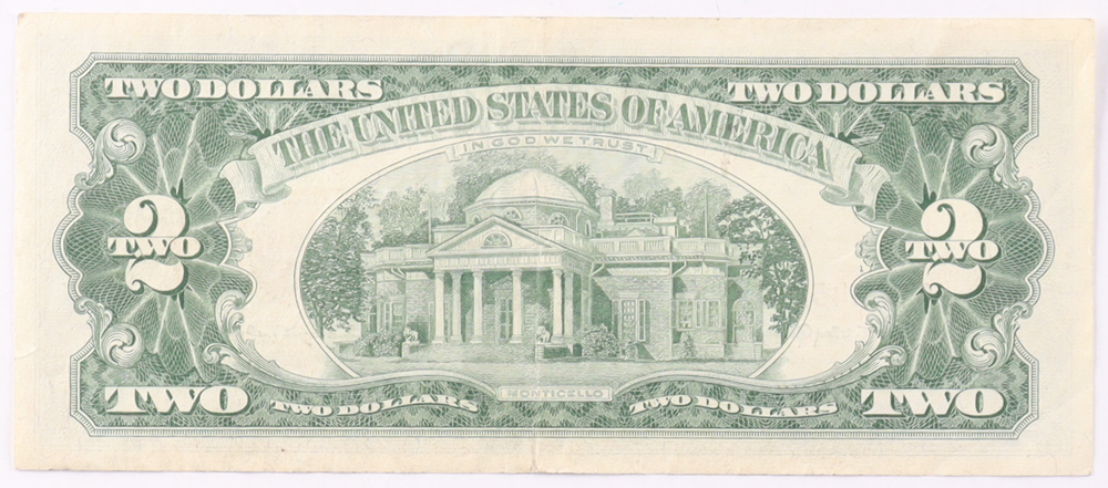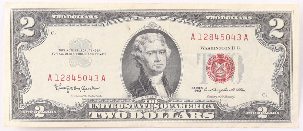 1963 $2 United States Treasury Red Seal Silver Certificate Paper Bank Note
