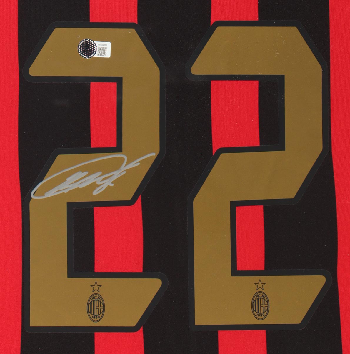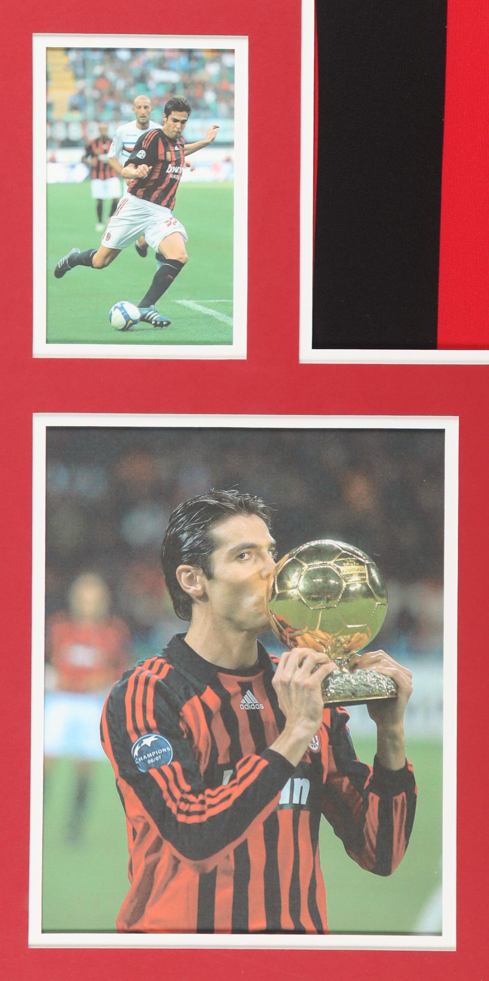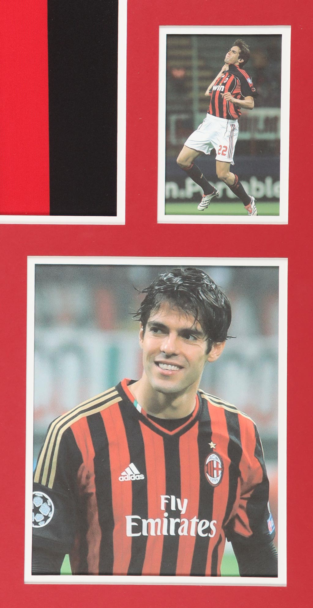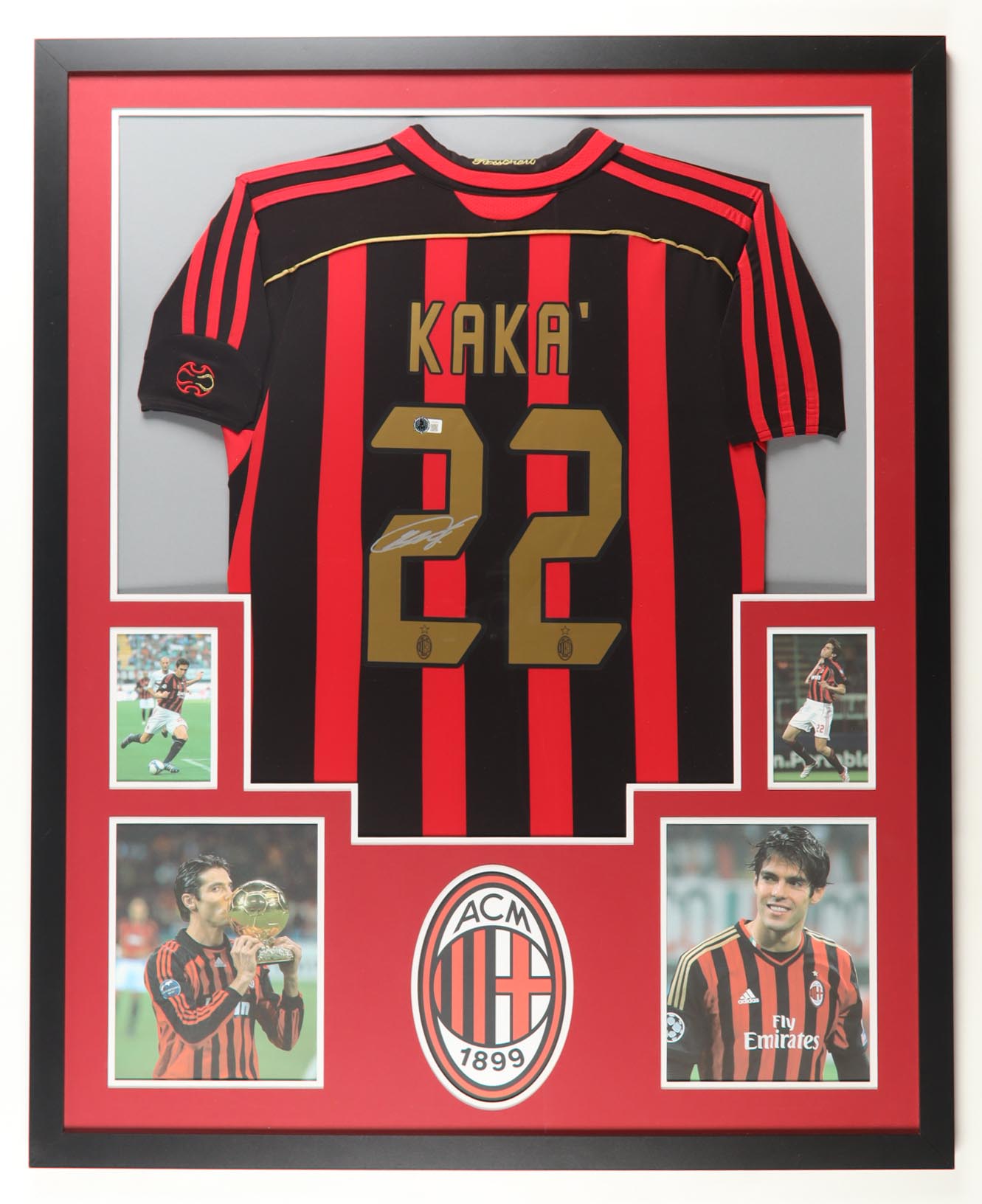 Custom frame measures 34" x 42" in size and features a custom jersey that has been hand-signed by Ricardo Kaka (AC Milan). Please refer to photos regarding the condition of the item.
