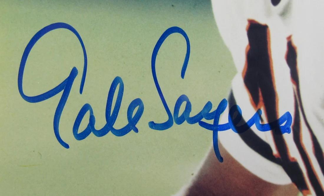 Photo measures 8” x 10” in size and has been hand-signed by Gale Sayers (D. 2020, Chicago Bears, HOF).