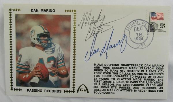 Dan Marino & Mark Clayton Signed Envelope Cachet (JSA)