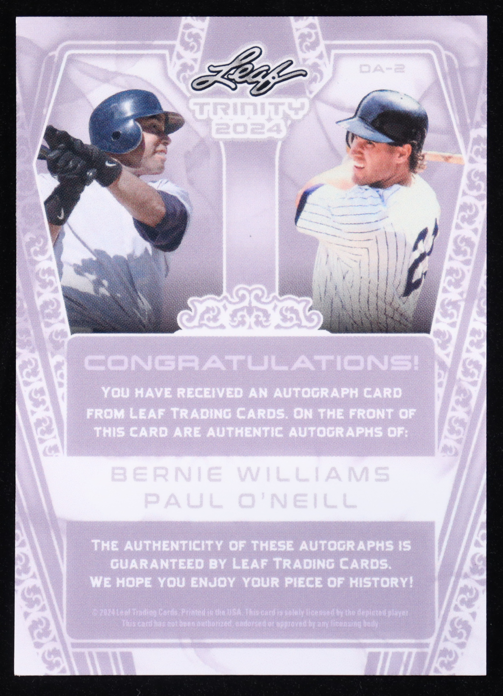 Bernie Williams / Paul O'Neil 2024 Leaf Trinity Dual Autographs Black #DA2 #1/5