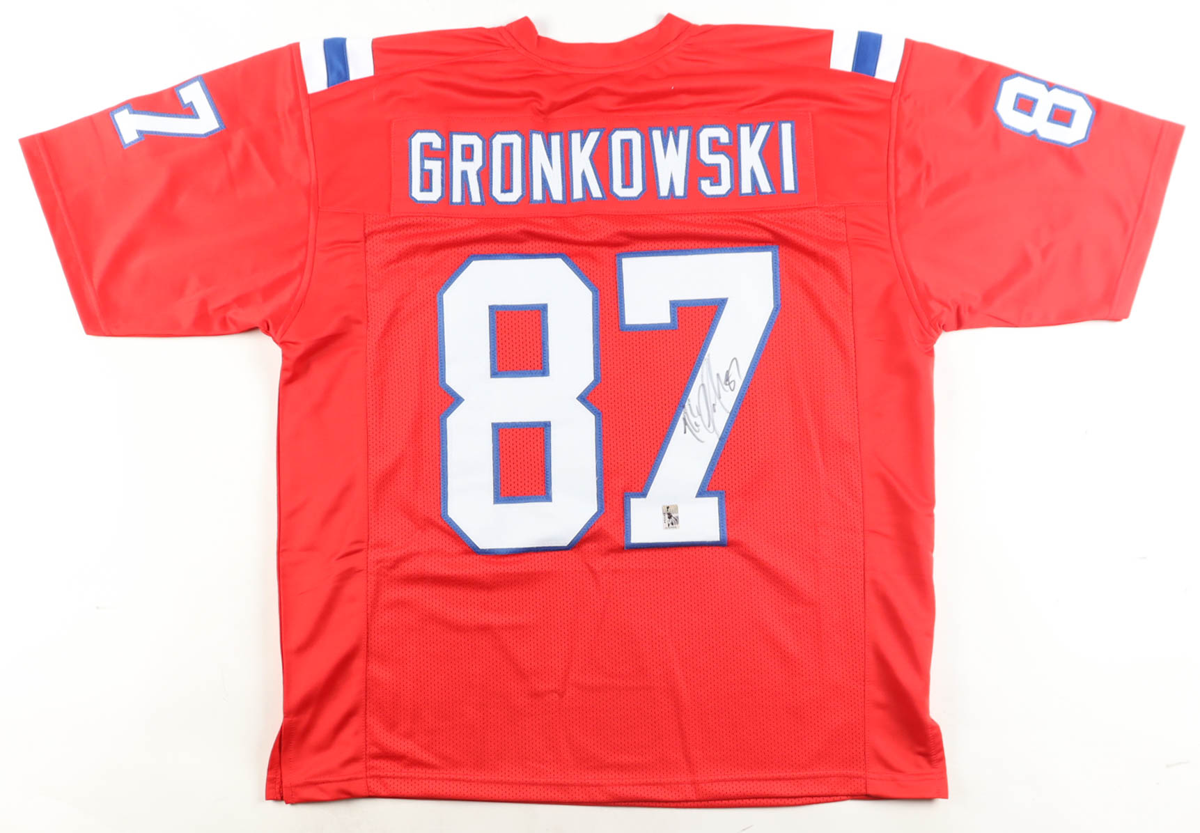 Custom jersey with everything sewn on, size XL. Hand-signed by Rob Gronkowski.