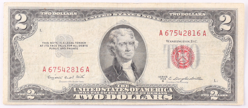 1953-B $2 United States Treasury Red Seal Silver Certificate Paper Bank Note