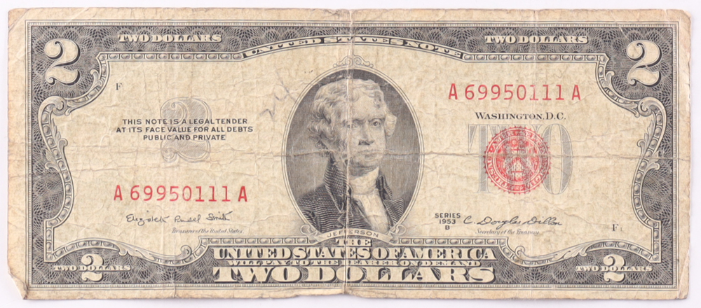 1953-B $2 United States Treasury Red Seal Silver Certificate Paper Bank Note