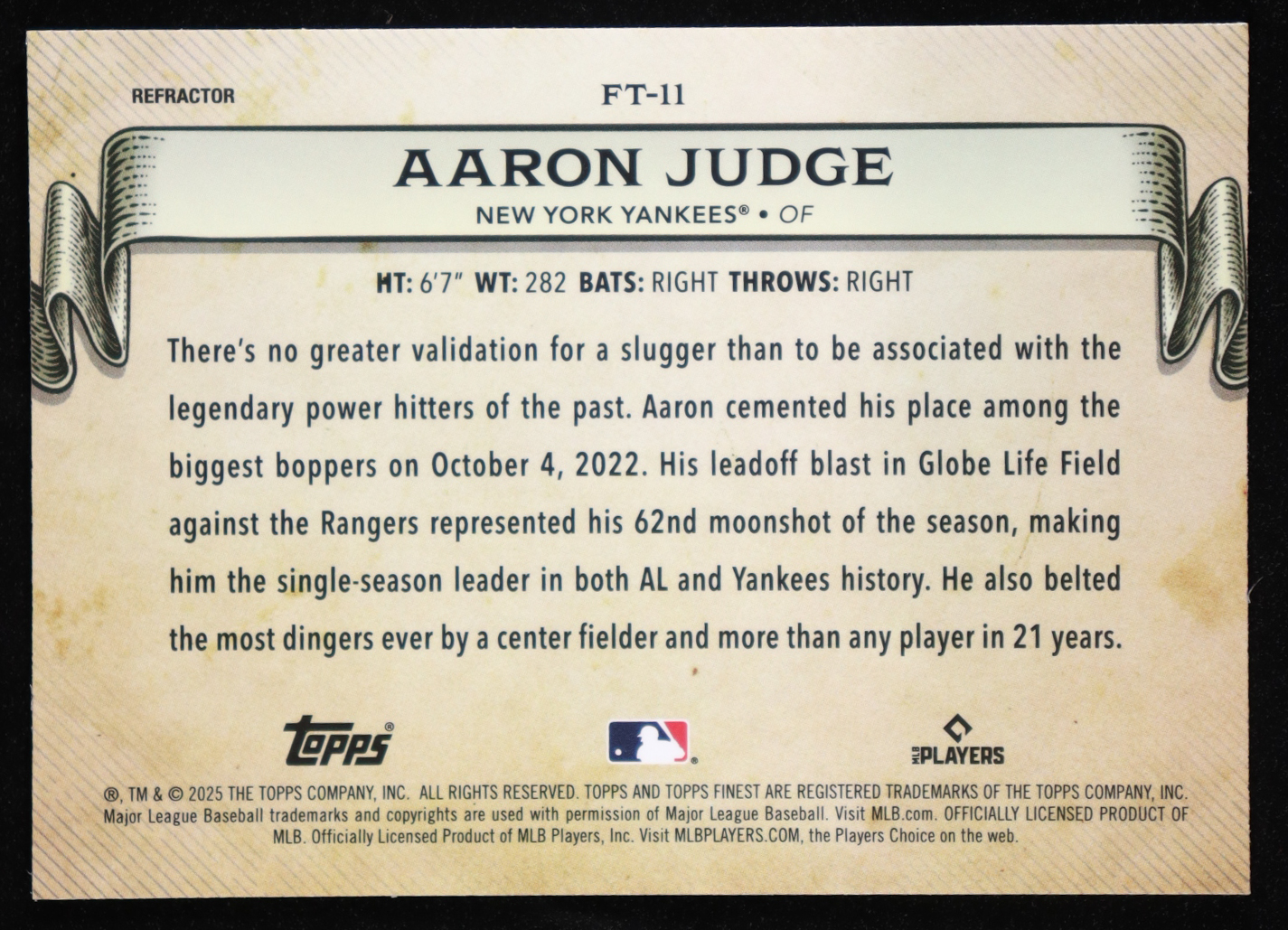 Aaron Judge 2025 Finest Finest Timelines Refractors #FT11