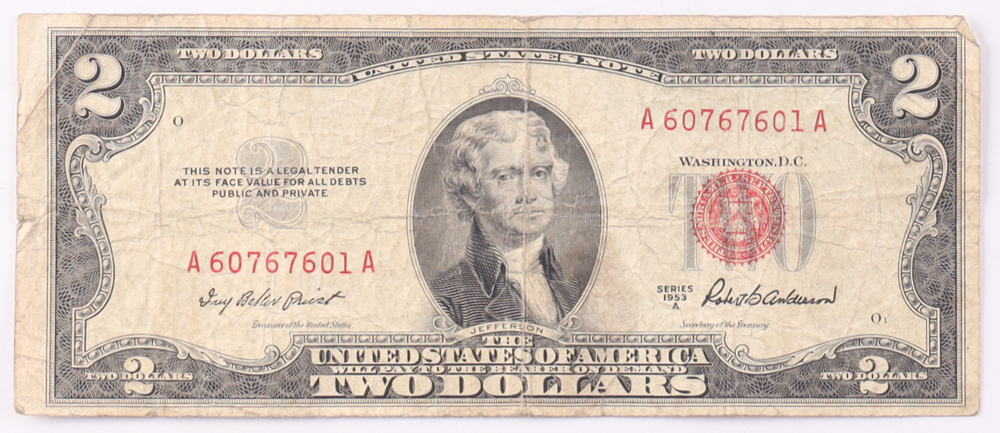 1953-A $2 United States Treasury Red Seal Silver Certificate Paper Bank Note