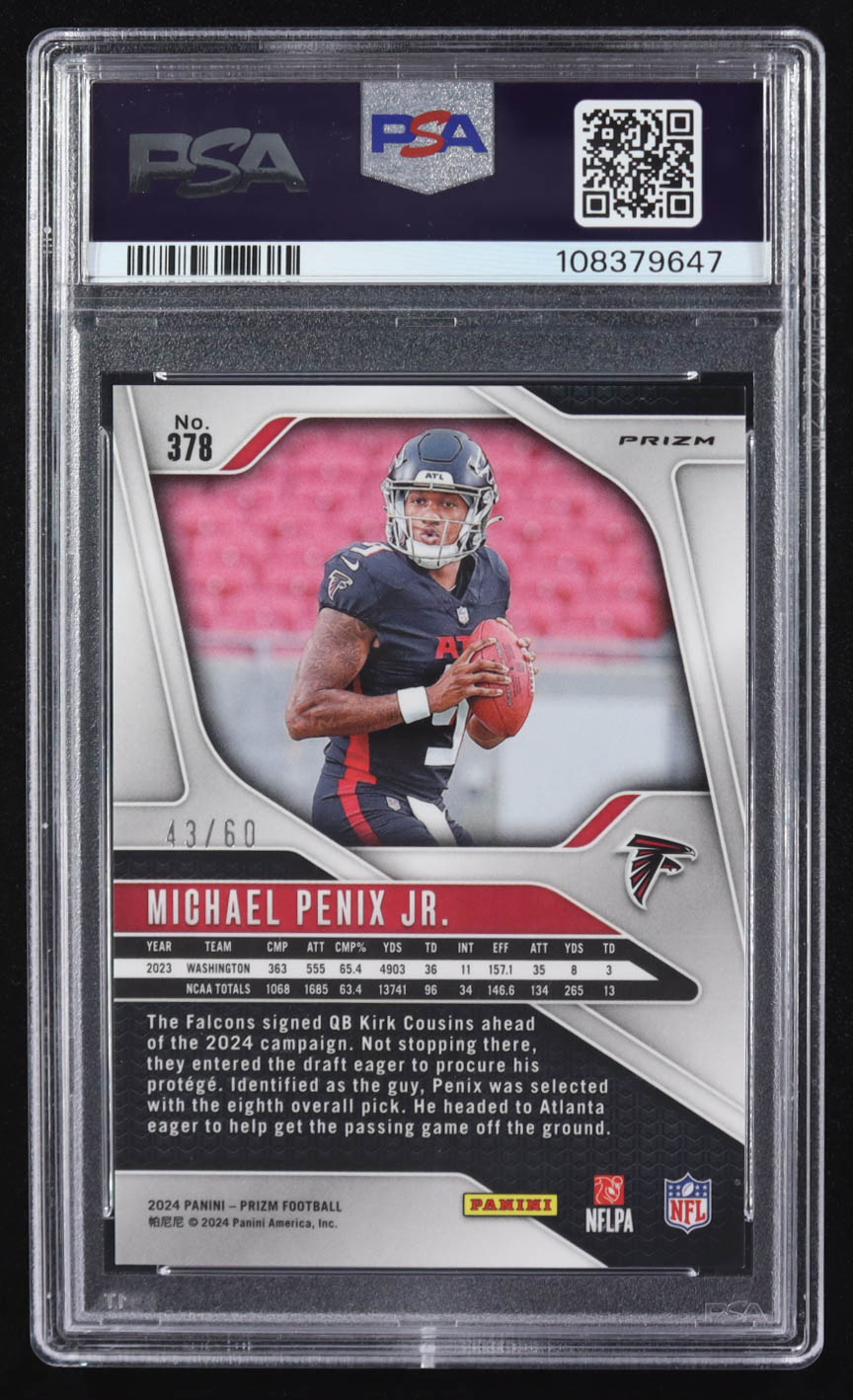 Michael Penix Jr. 2024 Panini Prizm Prizms Orange Wave #378 RC #43/60 (PSA 9)
