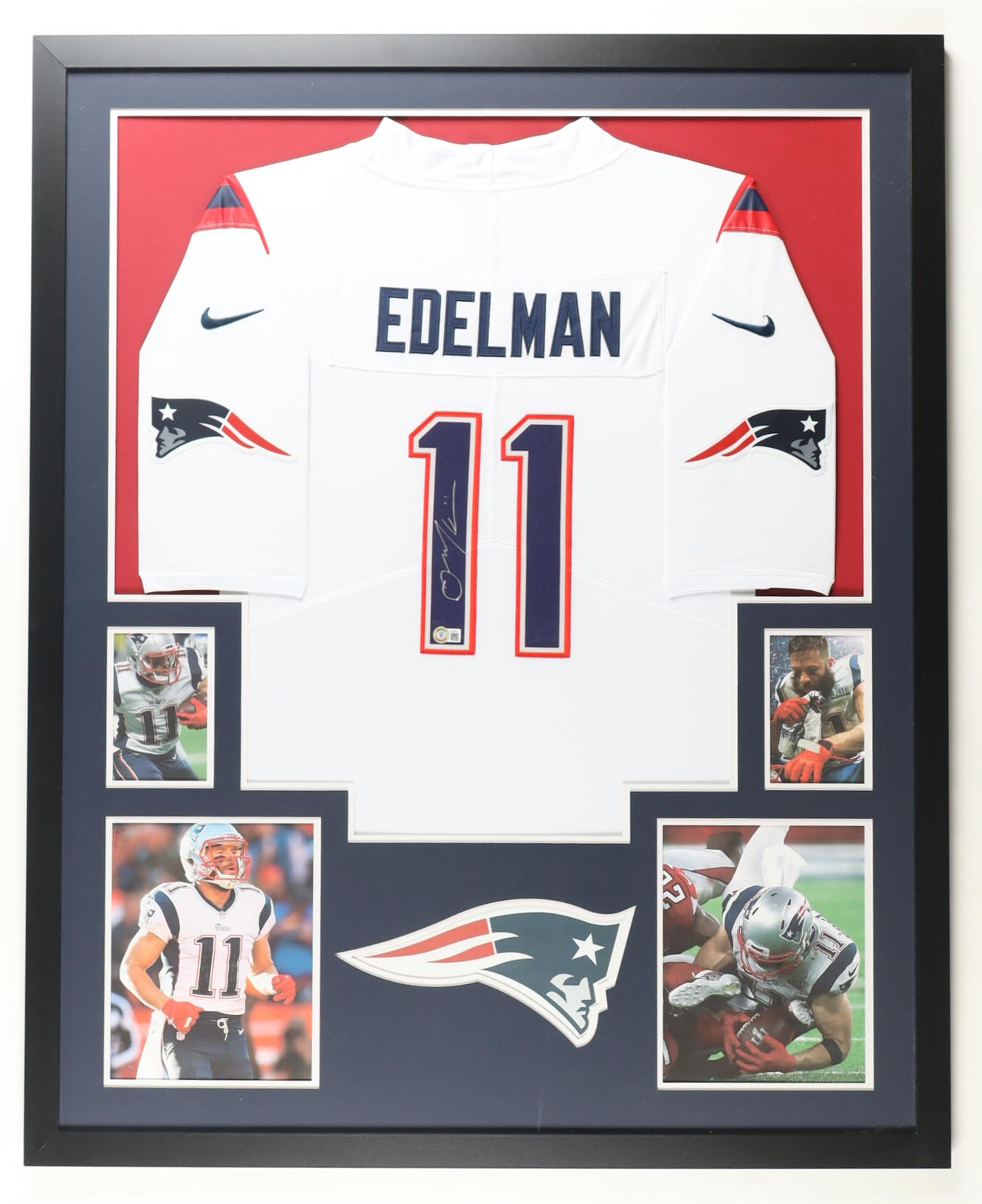 Julian Edelman Signed Custom Framed Patriots Authentic Nike Jersey Display with Photos (Beckett)