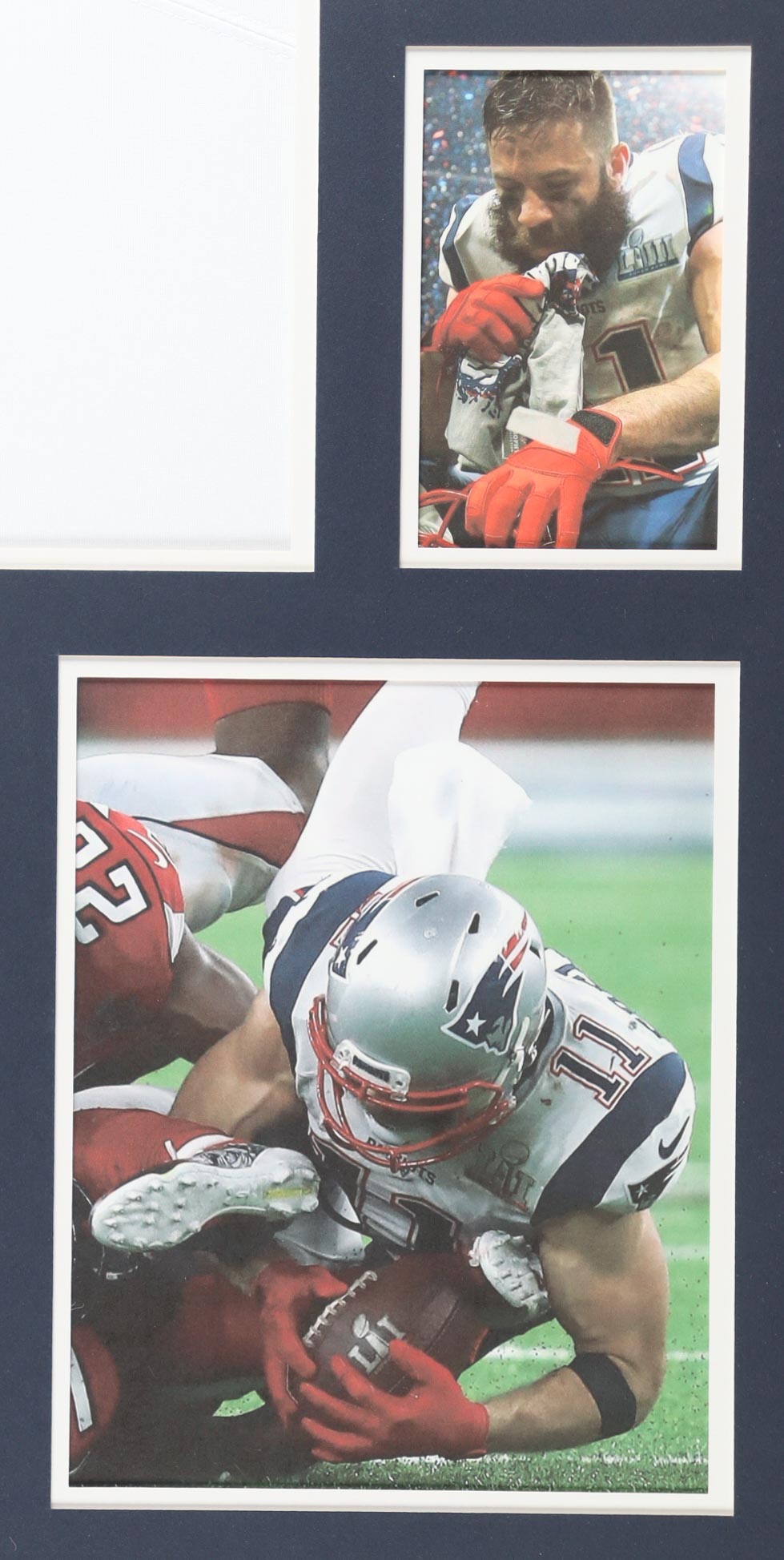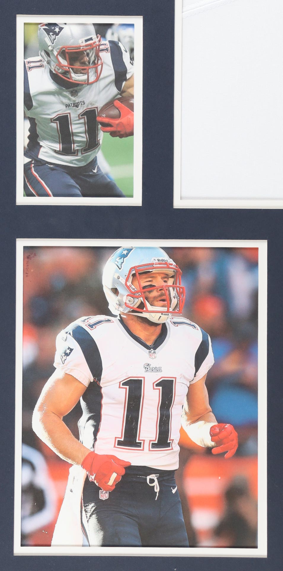 Custom frame measures 34" x 42" in size and features a Patriots authentic Nike jersey that has been hand-signed by Julian Edelman (New England Patriots). Please refer to photos regarding the condition of the item.