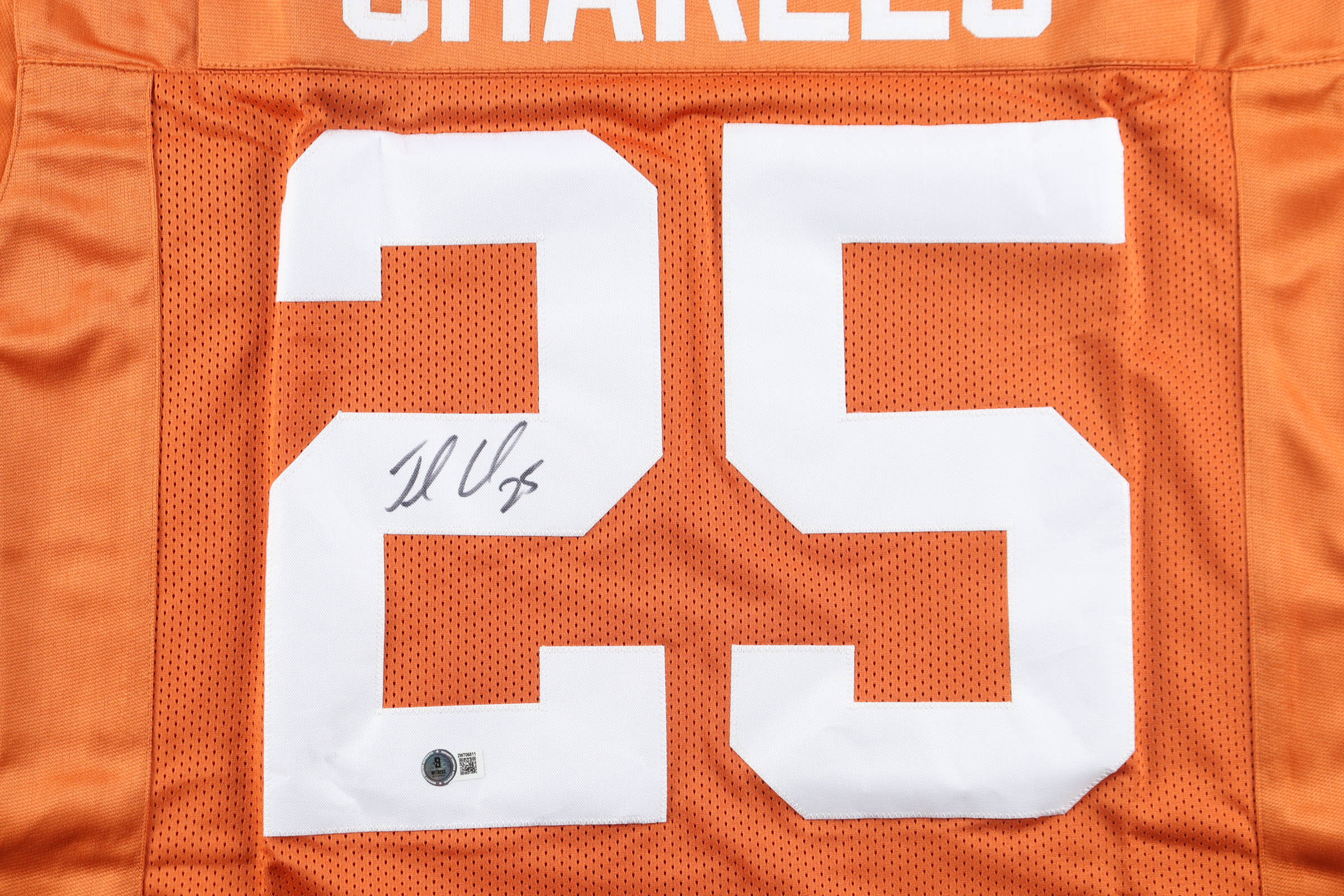 Custom jersey with everything sewn on, size XL. Hand-signed by Jamaal Charles.