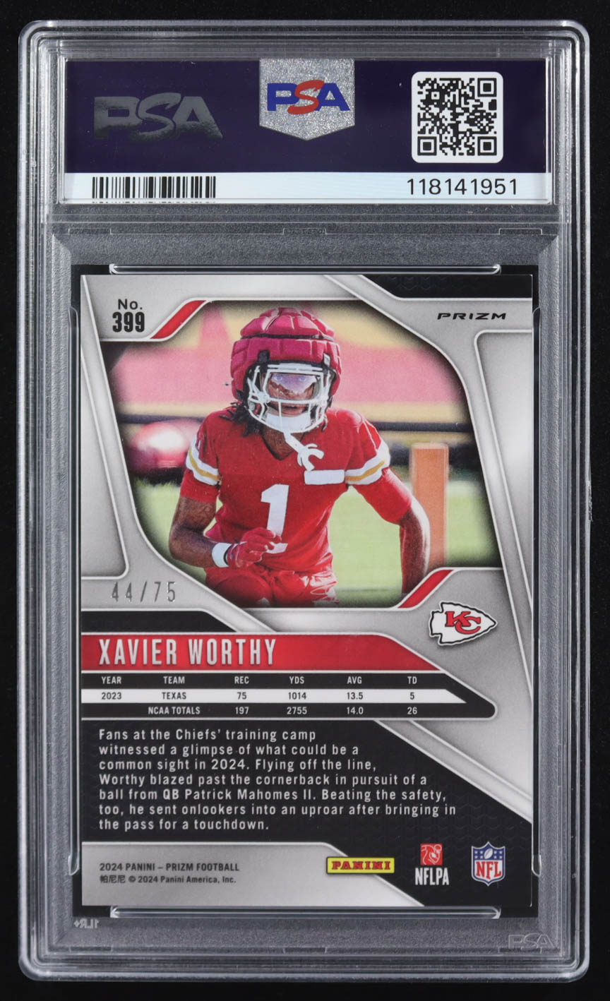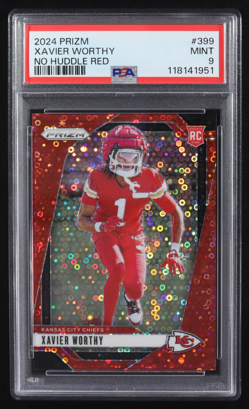 Xavier Worthy 2024 Panini Prizm Prizms No Huddle Red #399 #44/75 (PSA 9)