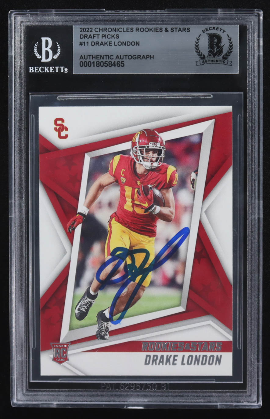 Drake London Signed 2022 Panini Chronicles Rookies & Stars Draft Picks #11 RC (BGS)