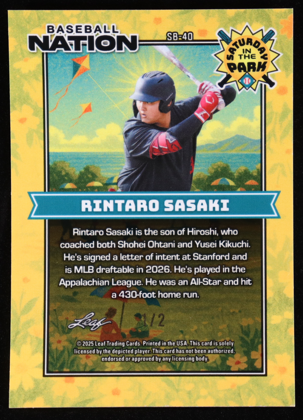 Rintaro Sasaki 2025 Leaf Baseball Nation Saturday In The Park Red Lava #SB40 #1/2 RC