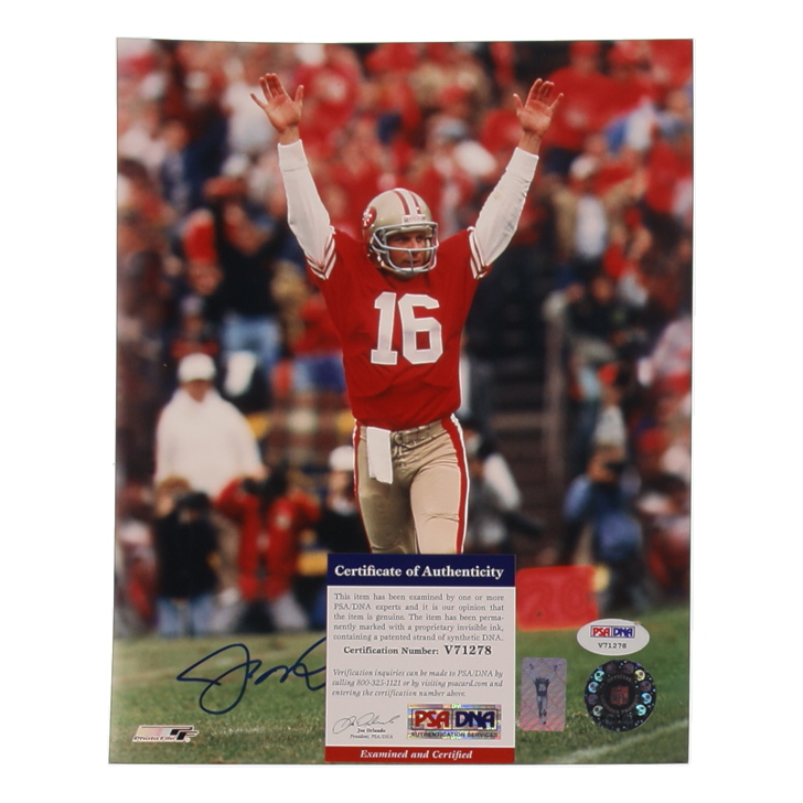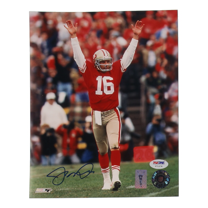 Photo measures 8" x 10" in size and has been hand-signed by Joe Montana (San Francisco 49ers, HOF).
