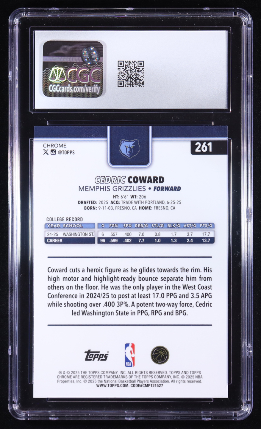 Cedric Coward 2025-26 Topps Chrome X-Fractors #261 RC (CGC 9.5)