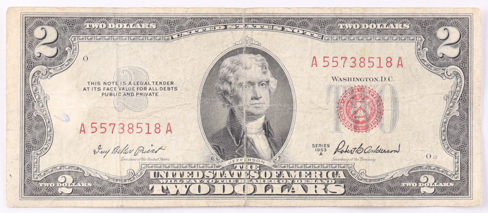1953-A $2 United States Treasury Red Seal Silver Certificate Paper Bank Note