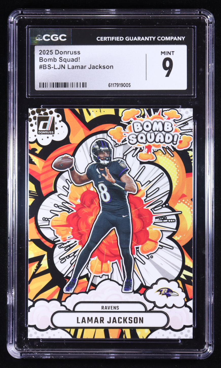 Lamar Jackson 2025 Donruss Bomb Squad #28 (CGC 9)