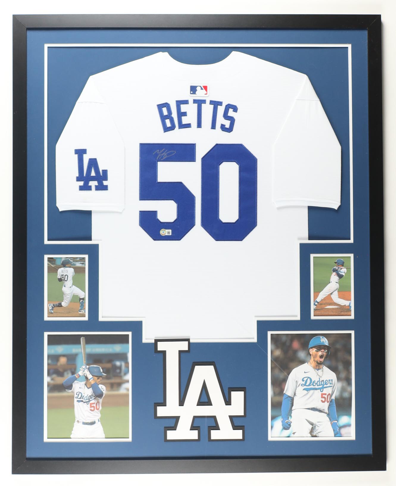 Custom frame measures 34" x 42" in size and features a custom jersey that has been hand-signed by Mookie Betts (Los Angeles Dodgers). Please refer to photos regarding the condition of the item.