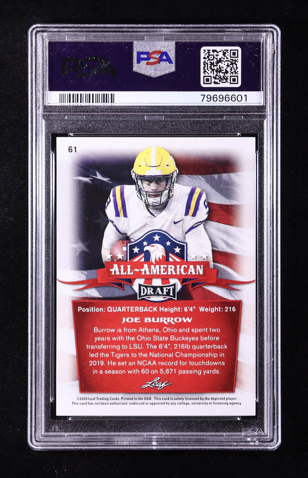 Joe Burrow 2020 Leaf Draft Gold #61 AA RC (PSA 10)