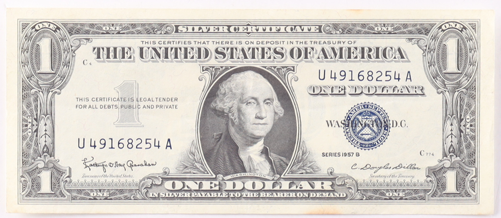 1957-B $1 United States Treasury Blue Seal Silver Certificate Paper Bank Note