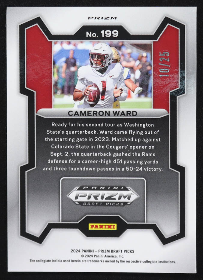 Cameron Ward 2024 Panini Prizm Draft Picks Prizms Green Pulsar #199 RC #10/25