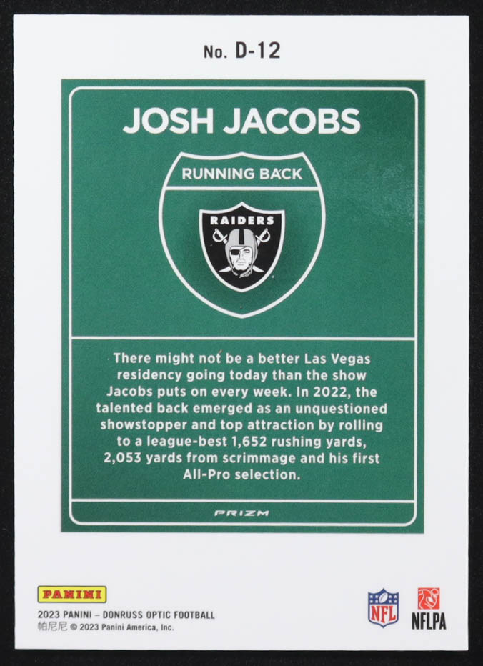 Josh Jacobs 2023 Donruss Optic Downtown #D12