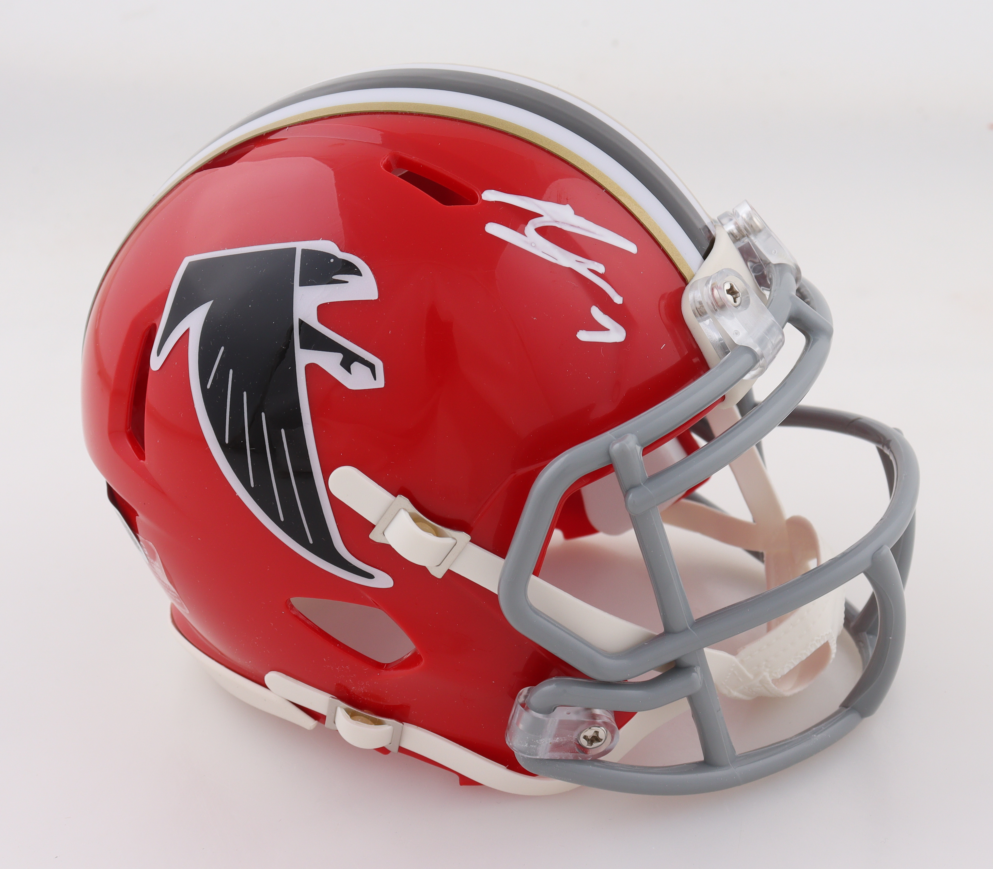 Riddell Atlanta Falcons speed mini helmet has been hand-signed by Bijan Robinson.