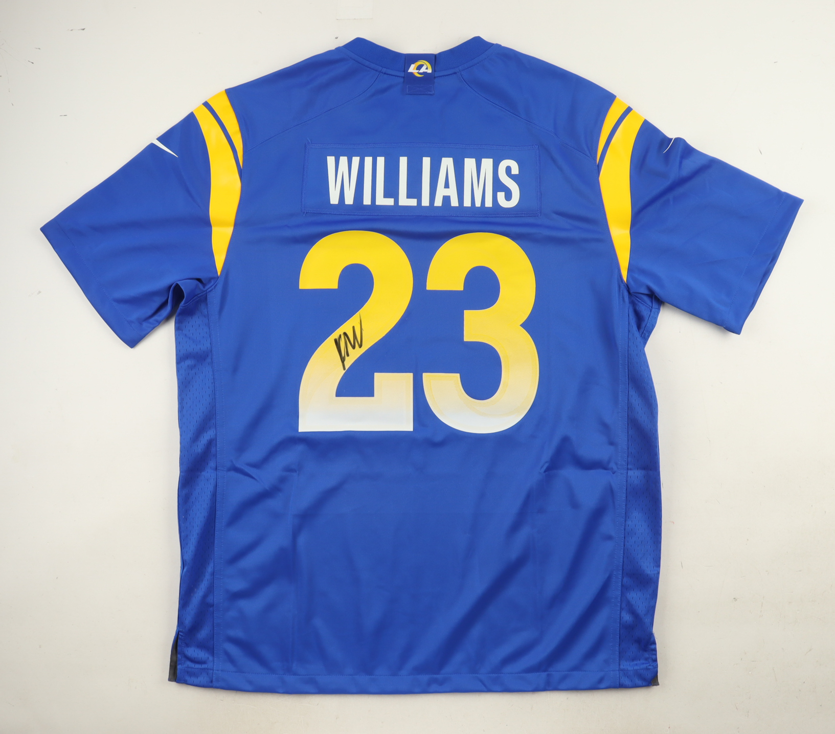 Nike jersey with everything pressed on, size XL. Hand-signed by Kyren Williams (Los Angeles Rams).