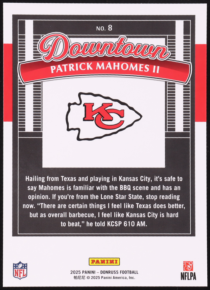 Patrick Mahomes II 2025 Donruss Downtown! Oversize #8