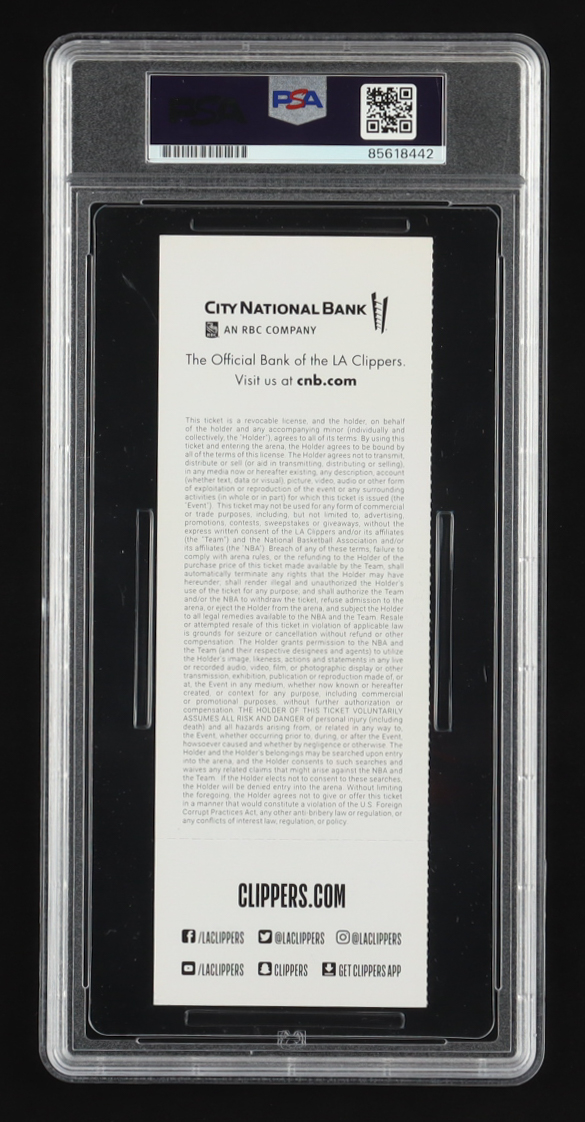Shai Gilgeous-Alexander Signed 2019 Clippers Game Ticket (PSA)