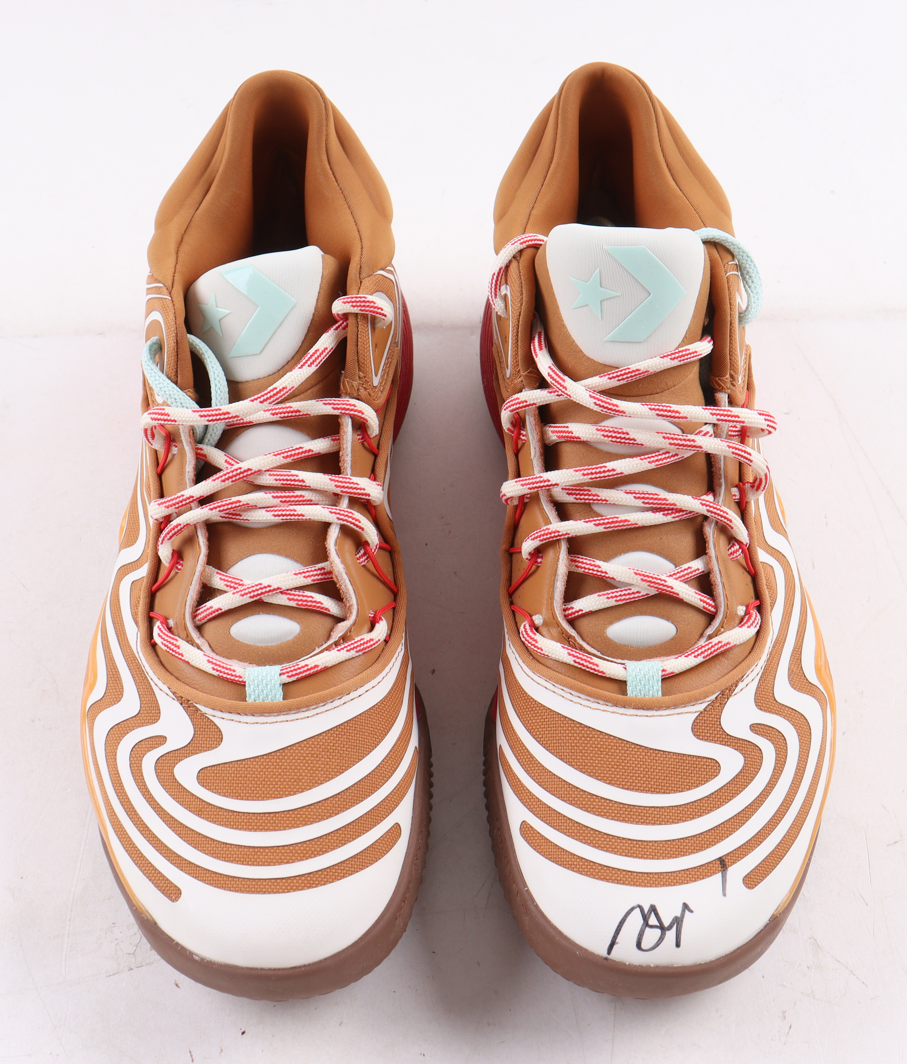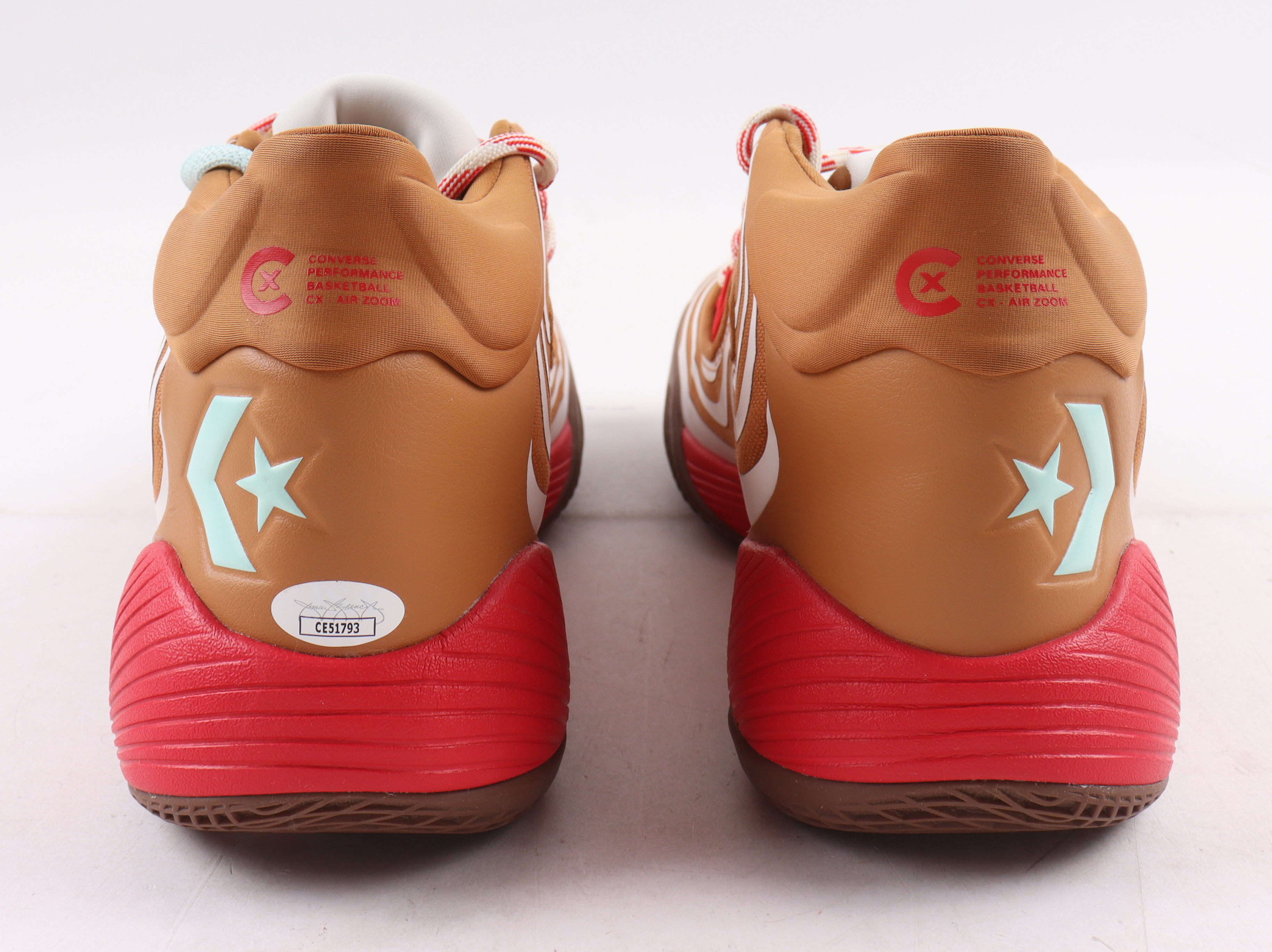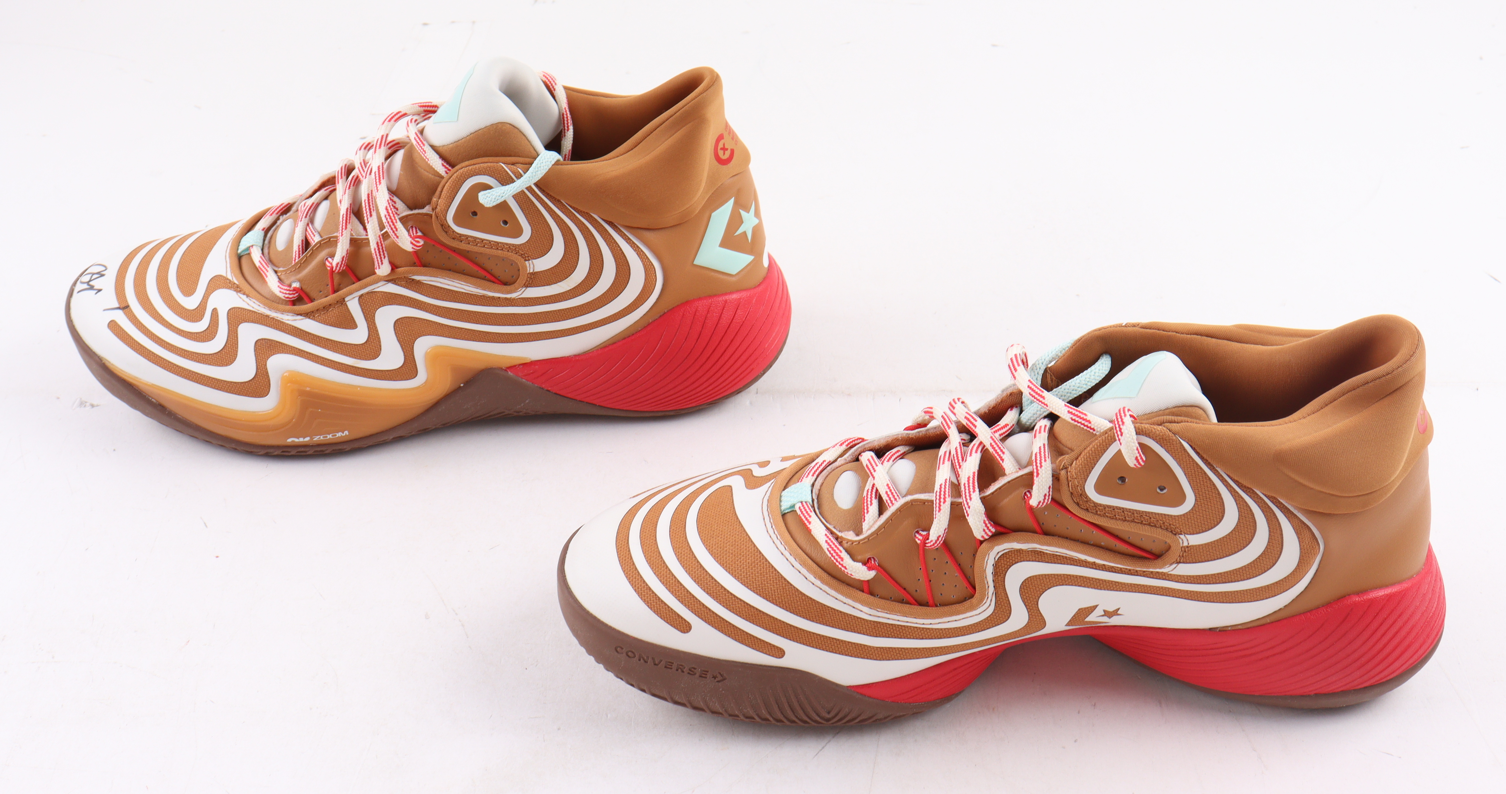 Pair of All Star BB Shift CX “Gingerbread” shoes, size 11.5, has been hand-signed on the left shoe by Shai Gilgeous-Alexander (Oklahoma City Thunder).