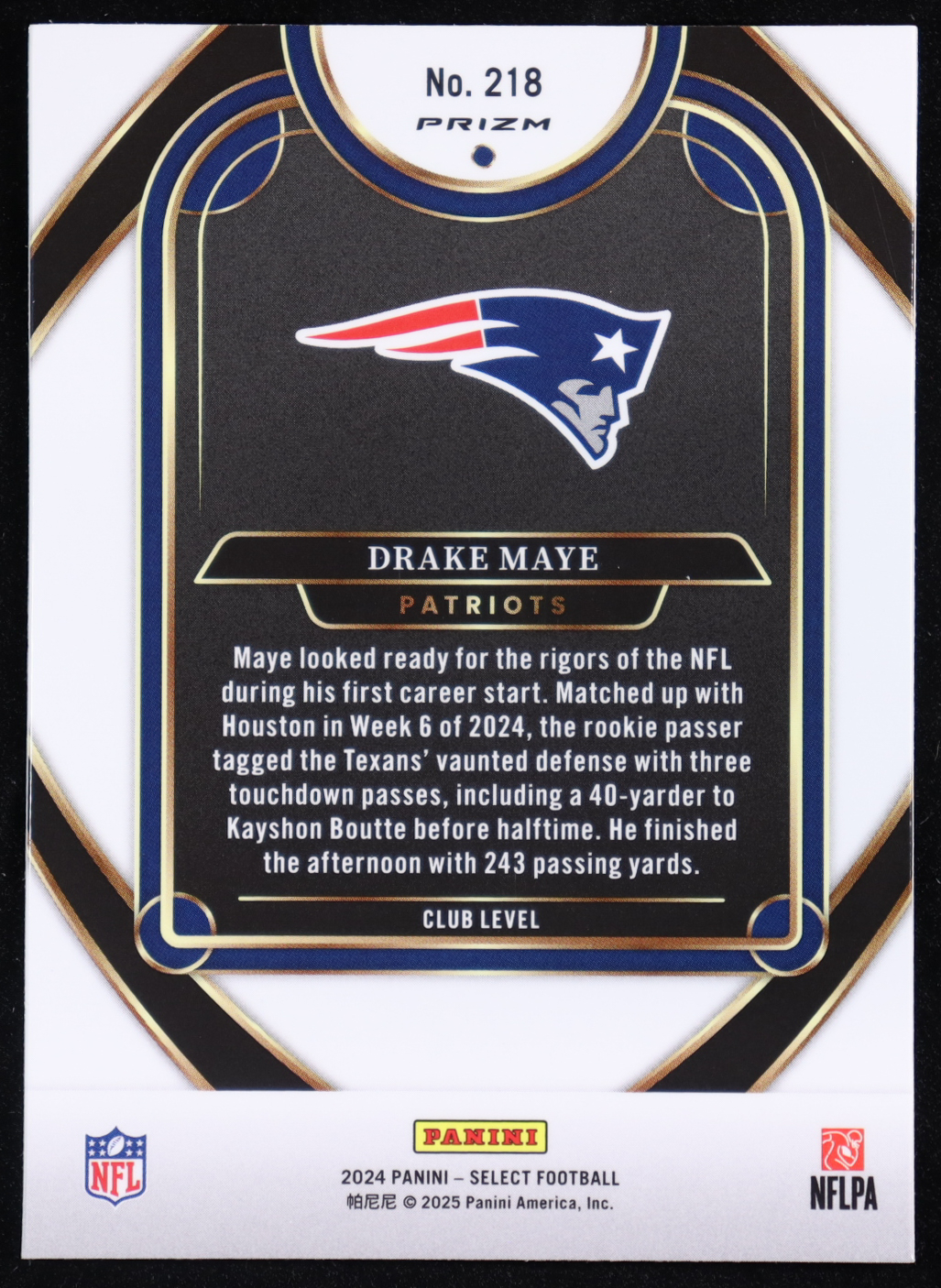 Drake Maye 2024 Select Prizm Red and Yellow Shock #218 RC