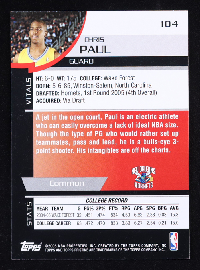 Chris Paul 2005-06 Topps Pristine #104 RC